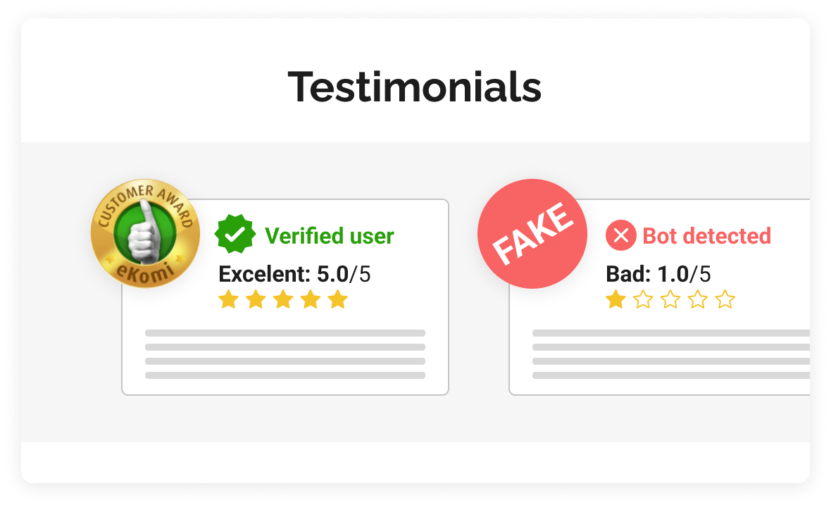 Show only your real reviews with our eKomi Trust-Certificates, Seals, Widgets and Awards